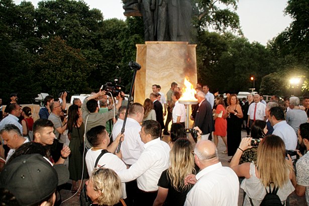 Daha sonra 21. Karadeniz Ereğli Sevgi Barış Dostluk Festivali için Anıt önünde hazırlanan meşale, protokol ve çeşitli siyasi parti temsilcileri tarafından hep birlikte yakıldı.