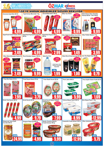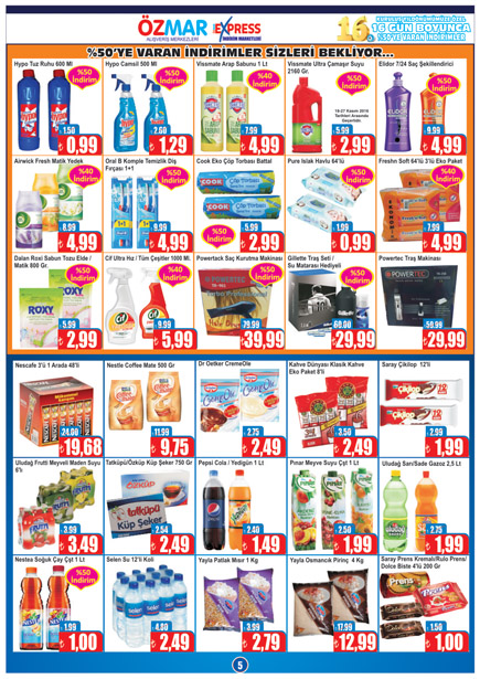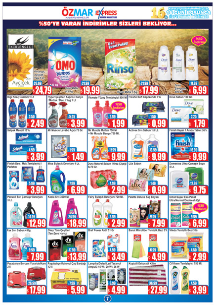 Özmar Alışveriş Merkezlerinden yapılan açıklamaya göre, kampanya kapsamında mağaza içi birçok üründe yüzde 50'yi bulan indirimlerle, her gün farklı ürünler satışa sunulacak. Özmar Alışveriş Merkezleri, kampanyada satışa sunulan ürünlerin en ucuz fiyat olduğunu garanti ediyor. Bu garanti kapsamında, vatandaşlar aynı ürünü kampanya fiyatlarından daha ucuza bulduğunda aradaki fiyat farkını geri ödeme taahhüt ediliyor. Özmar, tüm vatandaşları bu kampanyadan yararlanmaya davet etti.