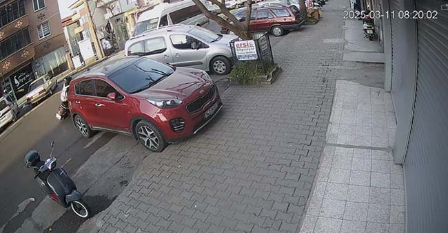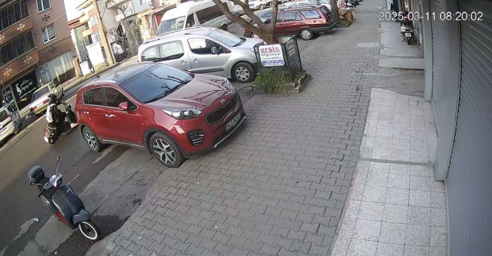 Yaşanan kaza anı güvenlik kameralarına yansıdı. Görüntülerde motosiklet sürücüsünün karşıdan gelen minibüsü görmesi ile motosikleti devirdiği görülüyor.