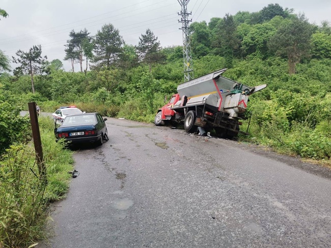 Kaza, 12.00 sıralarında Alaplı Çatak Köyü yolu üzerinde meydana geldi. Edinilen Bilgilere göre, Çatak köyü yolu üzerinden gelen İlhan M.(48) kullandığı 67 UG 164 plakalı otomobil, sürücüsünün hakimiyetini kaybetmesi neticesinde yolun sağ taraf tarafında park halindeki Tahsin U. (53) idaresindeki Alaplı Özel İdare Şefliğine ait kamyona arkadan çarptı.