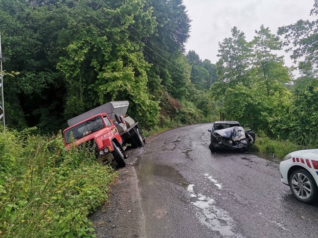 Zonguldak'ın Alaplı ilçesinde, park halindeki özel idare kamyona arkadan çarpan otomobil sürücüsü İlhan M. yaralandı.
