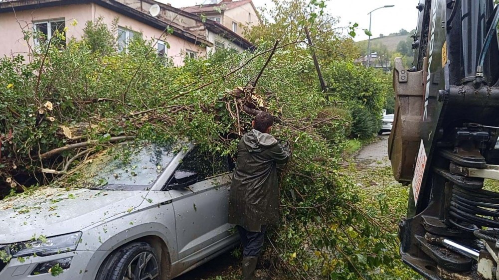 Zonguldak’ın Çaycuma ilçesinde park halindeki bir otomobilin üzerine ağaç devrildi.
