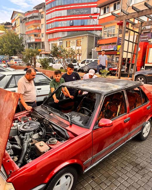 Araç yangınıyla ilgili soruşturma başlatıldı.