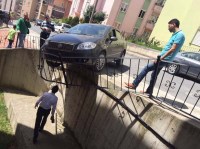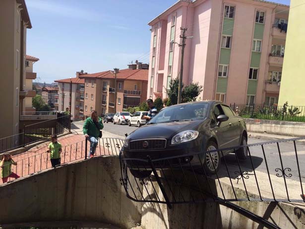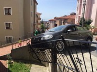 Zonguldak'ın Ereğli ilçesinde otoparktan çıkmak isteyen kadın sürücü direksiyon hakimiyetini kaybederek korkuluklara çarptı. Askıda kalan otomobilin sürücüsü çevredeki komşularının yardımıyla arabadan çıkarıldı.