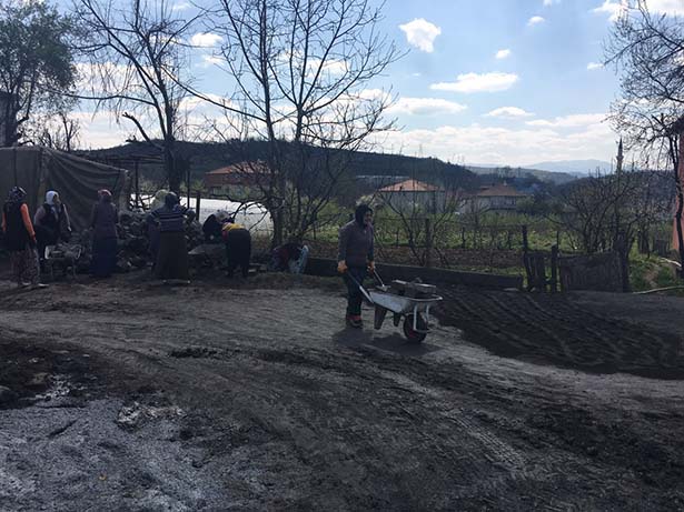 Zonguldak'ın Ereğli İlçesi'ne bağlı Süleymanbeyler Köyü'nde, yol düzenleme çalışmalarına kadınlar da destek verdi.