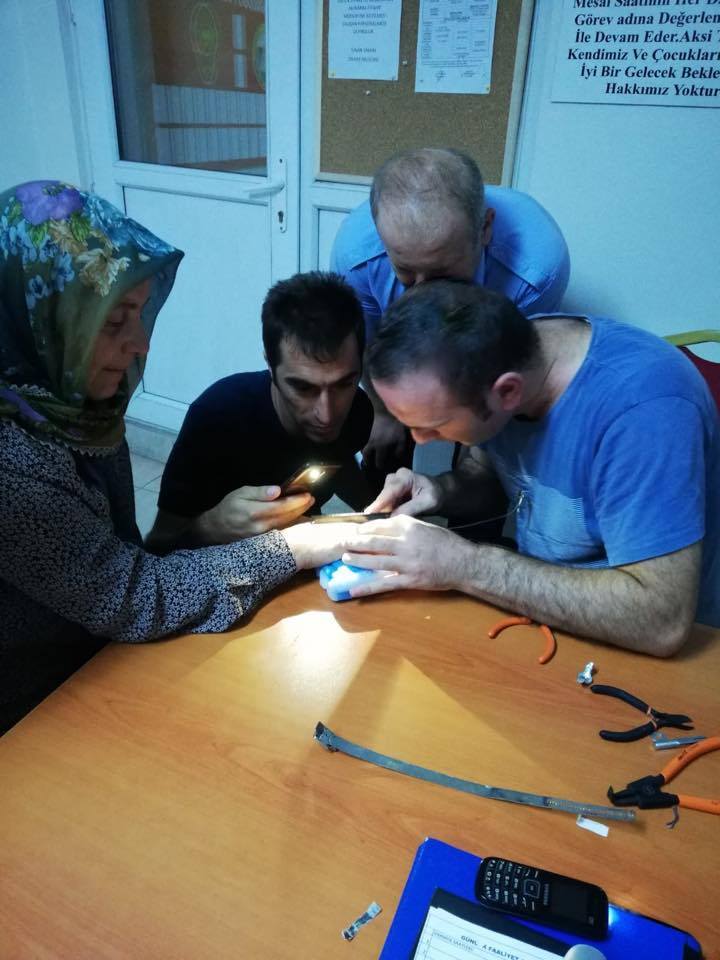 Alaplı Belediyesi İtfaiye Müdürü Sinan Taşkın ise gece geç saatlerde kendilerine gelen Ayten Karabulut'un parmağında ki yüzüğü çalışma ile çıkarttıklarını, gecenin kaçı olursa olsun Alaplı ve bölge halkının hizmetinde olduklarını kaydetti.