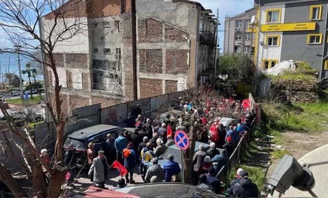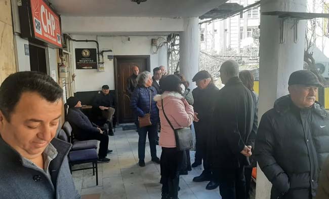 Parti binası önünde toplanıp, tepki gösterdiler....