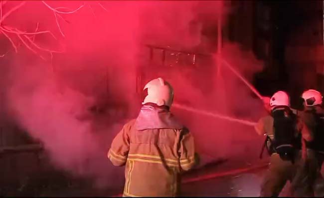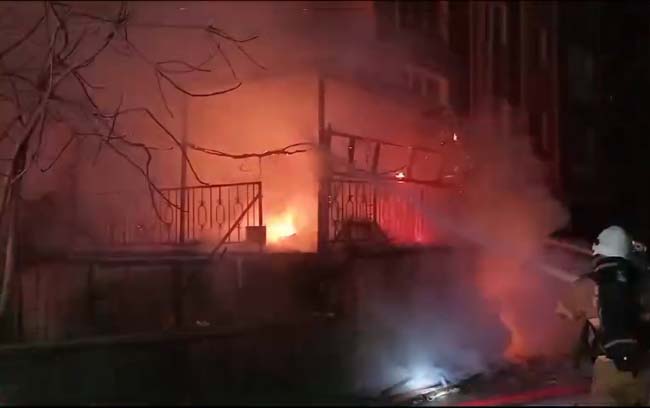 Bartın'da bir apartmanın bahçesinde önce patlama sesleri duyuldu. Seslere uyanan mahalleli kamelyadan yükselen alevleri görünce panik yaşadı.