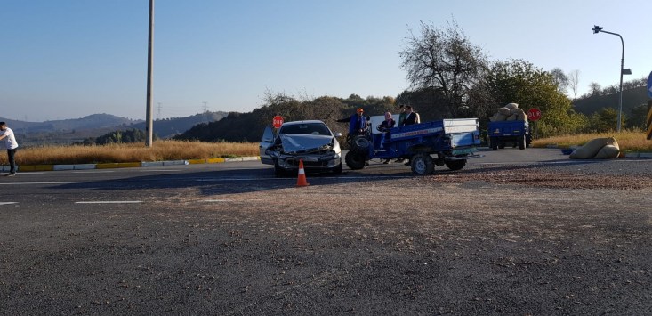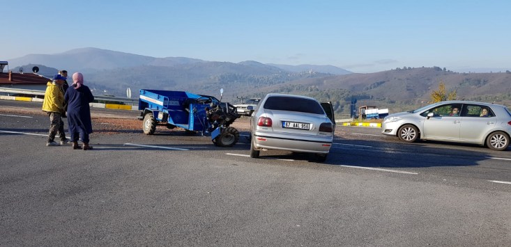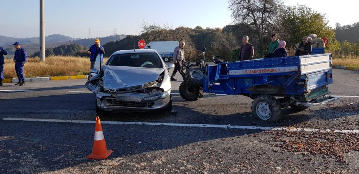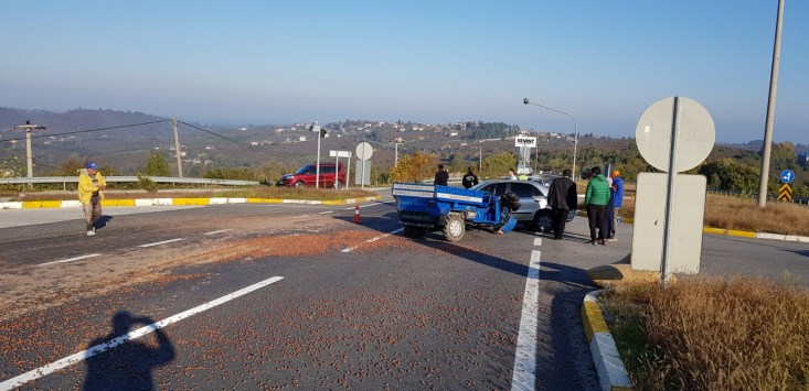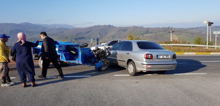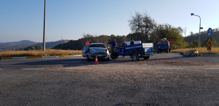 Akçakoca Düzce Karayolu üzerinde, halk arasında patpat olarak tabir edilen Motorlu Çapa Makinesi ile otomobil çarpıştı, kazada patpat şoförü yaralandı.