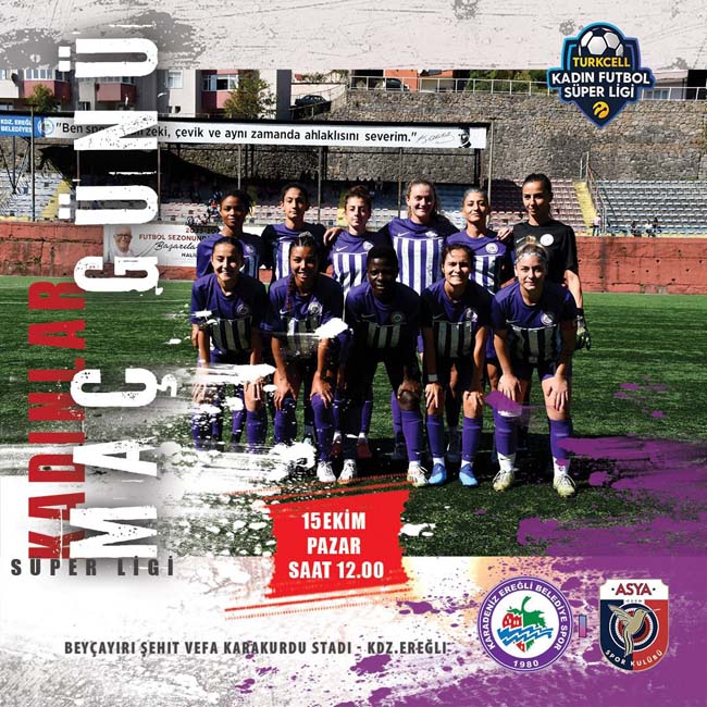 Kadınlar Süper Liginde mücadele eden Karadeniz Ereğli Belediyespor, 7. Hafta maçında 15 Ekim Pazar günü Gaziantep Asya Spor Kulübü ile kendi evinde karşılaşacak. Şehit Vefa Karakurdu (Beyçayırı) Stadı’nda oynanacak olan karşılaşma saat 12.00’de başlayacak.