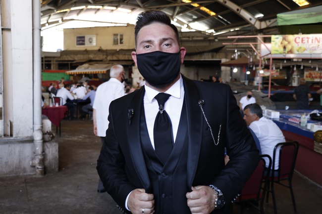 Damat Mahmutcan Küçük, "Kapalı alanlarda izin vermiyorlardı. Okul önlerinde de izin verilmedi. Mecburen böyle bir seçenek oldu. Bizim de doğduğumuz büyüdüğümüz yer burası. Burada düğün yapalım dedik. Sağolsun esnaf ağabeylerimiz de bize yardım etti. Yol gösterdiler. Bu şekilde düğünü yaptık. Masalar tedbirli şekilde, maskemiz, kolonyamız var. Eksiğimiz yok. Düğüne gelenlerin ateşleri de ölçülüyor. Bir sıkıntımız yok" diye konuştu.