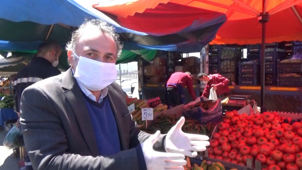 Taşkın açıklamasında “Kaymakam beyle yaptığımız toplantı doğrultusunda pazaryerlerimizi açmış bulunmaktayız. Kaymakam beyin verdiği talimatlar doğrultusunda pazaryerinin giriş ve çıkışlarında dezenfekte ve eldiven dağıtıyoruz. Belediye kaymakam ve polis memuru arkadaşlarımızın denetiminde şuan hizmet vermekteyiz. Bir de fiyatlarımız var. Vatandaşlarımıza fiyatları gösterelim marketlerle pazarların Fiyatlarını siz karşılaştırın. Marketlerle pazarlardaki soğanları karşılaştırın. Markette beş lira olan patates pazarda 2,5 lira pazarda daha uygun. Pazarda sosyal mesafe olarak marketlerle manavlar iç içe olduğu gibi pazarlar öyle değildir. Müşteri ile alıcı arkadaşlar arasında bir buçuk metre mesafe vardır. Markette iç içe seçerek alıyorlar, pazarda buradaki arkadaşların hem maskesi hem eldiveni tam tekbir. Sağ olsun kaymakamımız da eldiven verdi pazara her iki taraftan da dağıtılıyor. Bunun nazarında şu güzelliği görüyorsunuz mesafe her şey burada daha güzel. Buradan vatandaşlara fiyatları da bildirdik. Değerlendirmeyi vatandaşlarımıza bırakıyorum. Son olarak vatandaşlardan istediğim evde kalmaları virüsü yenene kadar evde kalsınlar eğer mecbur kalmadıkça dışarıya çıkmasınlar pazara gelmek istediklerinde sosyal mesafeye dikkat etmeleri eldiven ve maske kullanmaları zaten kaymakamlık olarak belediye olarak pazarda eldiven ve maske dağıtıyoruz. Söyleyeceklerim bu kadar pazarlar bundan sonra Salı ve Cuma günü cumartesi Pazar yerinde hizmet verecektir” dedi.