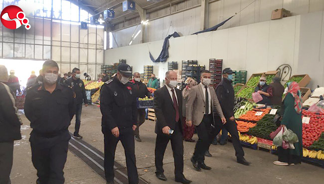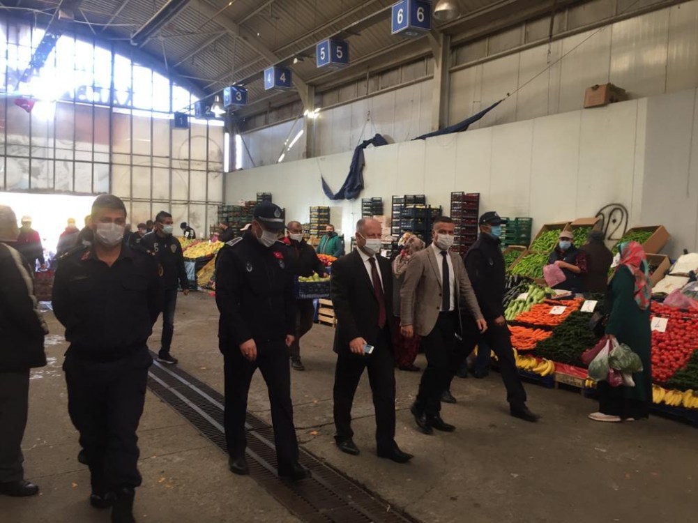 Zonguldak’ın Ereğli İlçe Kaymakamı İsmail Çorumluoğlu, merkez pazaryerini gezdi, maske ve mesafe denetiminde bulundu.
