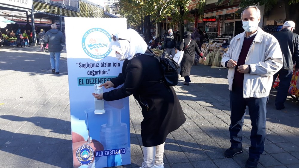Diğer yandan, Pazaryeri girişinde dezenfektan standı oluşturuldu.