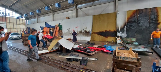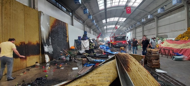.Zonguldak'ın Ereğli ilçesinde Kapalı Pazaryeri'nde çıkan yangında büyük hasar meydana geldi. Yangının küçük çocukların ateşle oynadığı sırada tahta kasalara sıçraması ile başladığı öğrenildi.