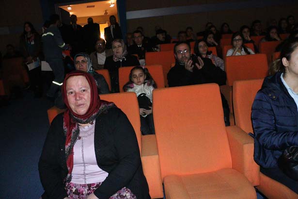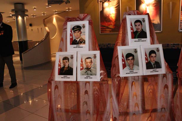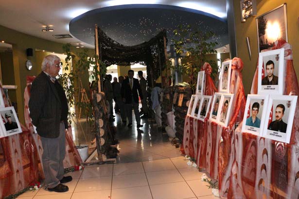 İbrahim Süheyla İzmirli Fen Lisesi'nin hazırladığı törende, salona giriş yolunda oluşturulan şehit ve gazi fotoğraflarının yer aldığı sergi de göz doldurdu.