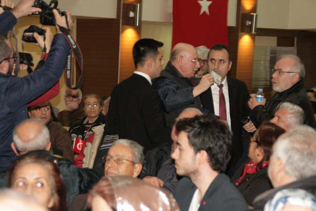 Perinçek konuşurken, CHP'nin de anayasadan Türk kelimesinin çıkarılmasını programına aldığını söyleyince, konferansı dinlemek için gelen CHP'li olduğunu belirten Mehmet Soyer, "CHP'yi ağzınıza almayın" tepkisi gösterdi. Perinçek'in ricası ve partililerle güvenlik görevlilerinin araya girmesiyle salondan çıkmak isteyen Soyer sakinleşerek salona döndü.