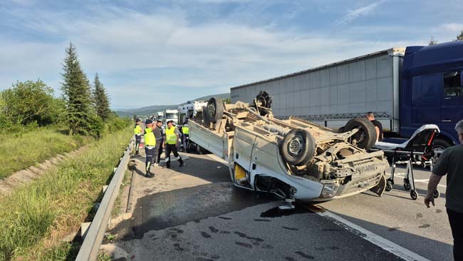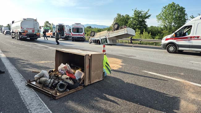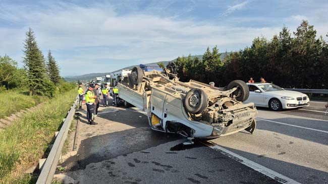 Kaza, Anadolu Otoyolu Düzce kesiminde Düzce gişeleri mevkiinde meydana geldi. Edinilen bilgilere göre, Ankara istikametinden İstanbul İstikametine gitmekten olan E.B idaresindeki inşaat işçilerini ve malzemelerini taşıyan pikabın lastiği patladı. Sürücüsünün direksiyon hakimiyetini kaybettiği araç takla attı. Kazada araç sürücüsü E.B. ile araçta bulunan H.G ve B.A. yaralandı.