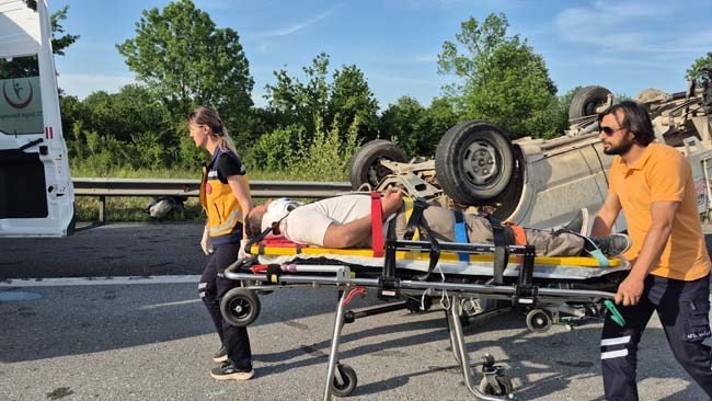 Yoldan geçen sürücülerin 112 Acil Çağrı Merkezine haber vermesi üzerine olay yerine sağlık ve otoyol jandarma ekipleri sevk edildi. Yaralılar ambulanslarla Atatürk Devlet Hastanesine ve Düzce Üniversitesi Hastanesine kaldırıldı.