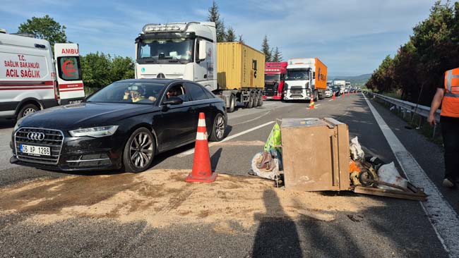 Kaza nedeniyle uzun araç kuyrukları oluştu. Araç ve yola savrulan inşaat malzemelerinin kaldırılmasının ardından trafik normal seyrine döndü.