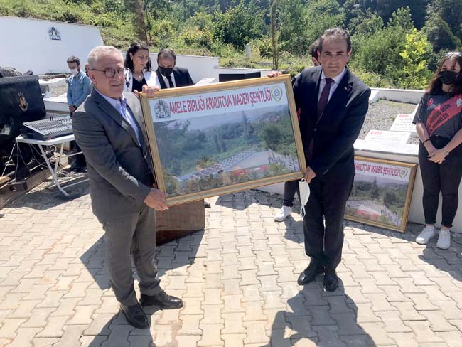 Konuşmaların ardından Mevlid-i Şerif okundu. Zonguldak Maden Şehitleri Aileleri Derneği tarafından yaptırılan ve üzerinde Amelebirliği Armutçuk Maden Şehitliği’nin fotoğrafı olan tablolar takdim edildi.