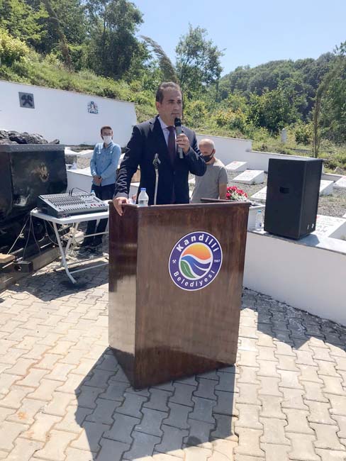 “Şu anda bulunduğumuz yerde 3 Aralık 1942 günlerden Perşembe günü TTK tarihinin ilk grizu faciasında 63 madenci kardeşimiz şehit oldu. En genç şehidimiz 18 yaşında. Günün şartlarında TTK kurumu tarafından buraya defnedilmiştir. Şehitliğimizin yeniden düzenlenmesinde finansal yönden destek sağlayan Amelebirliği başkanımız ve yönetim kuruluna, desteğini bizlerden esirgemeyen Kdz. Ereğli Kaymakamı İsmail Çorumluoğlu’na, şehitliğimize katkı sunan Kandilli Belediye Başkanımıza, Kdz. Ereğli Belediye Başkanımıza, GMİS Genel Başkanımıza, Kandilli mahalle muhtarlarımıza ve emeği geçen herkese teşekkür ederim.