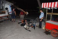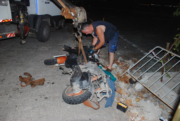 Kaza sabaha karşı Süleymanlar Mahallesi Bozhane kavşağı üzerinde meydana geldi. İddiaya göre, kavşakta virajı alamayan kimliği belirsiz sürücünün kullandığı 67 ES 699 plakalı motosiklet yaklaşık 50 metre sürüklenerek otobüs durağı yanındaki trafik işareti tabelası ve çöp kovalarına çarptı. Kazada motosiklet ikiye bölünüp hurdaya dönerken, sürücü ise bulunamadı. Polis ekipleri çevredeki çay bahçelerinde ve deniz kenarında motosiklet sürücüsünü ararken, ilçedeki tüm hastanelerde de kontrol yapıldı. Motosiklet sürücüsünün yaralı olarak kaçtığı tahmin edilirken, hurdaya dönen motosiklet çekici vasıtasıyla kaldırıldı.