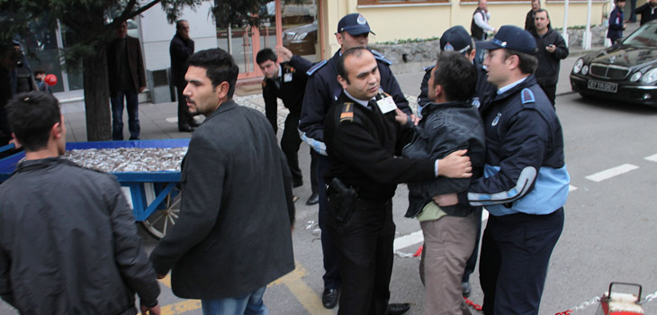 tezgâhta balık satışı yapan balıkçıları engelledi ve baskı yaptı. Bunun üzerine