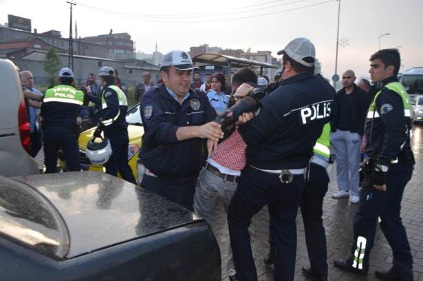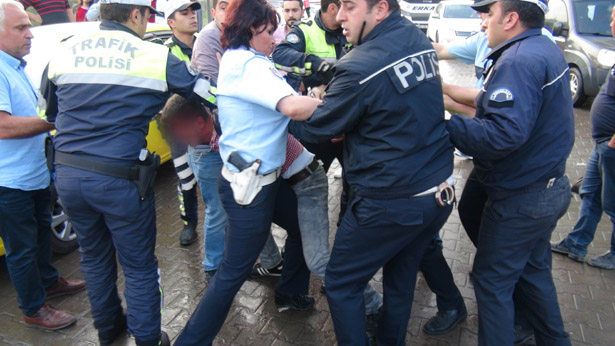 Polislere direnen Alper K ile trafik ekipleri arasında arbede çıktı. Polislere "Ceza yaz, bir daha bineceğim. Beni, yakala bir daha bineceğim" diye tepki gösterdi. Genç sürücüyü sıkıştıran polislerin müdahalesi ise sert oldu. Aralarında bir bayan trafik polisinin de bulunduğu 7 polis, bir anda sürücünün üzerine çullandı. Polislerin sert müdahalesine karşı koymaya çalışan Alper K, sinir krizi geçirdi. Yaklaşık 5 dakika polislere direnen sürücü, etkisiz hale getirilerek polis aracına götürüldü.