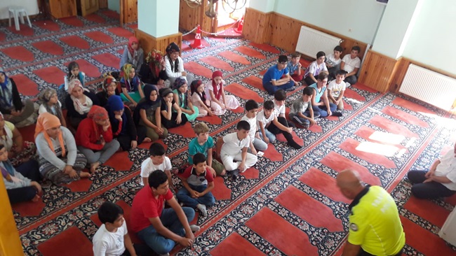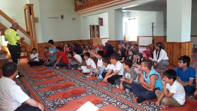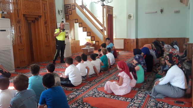 Zonguldak’ın Ereğli İlçe Emniyet Müdürlüğü, eğitim ve öğretim yılı içerisinde okullarda verdiği trafik seminerlerini bu kez de cami ve Kuran kurslarına taşıdı.