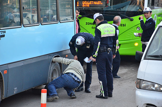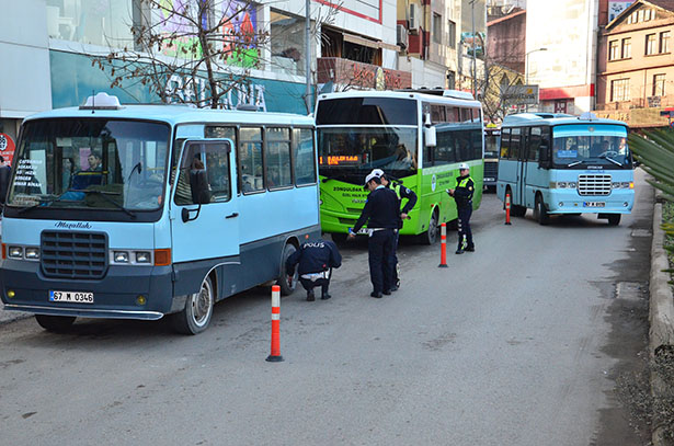 Zonguldak İl Emniyet Müdürlüğü Trafik Denetleme Şube Müdürlüğü ekipleri, yolcu taşıyan büyük araçlara "kar lastiği" uygulaması yaptı.