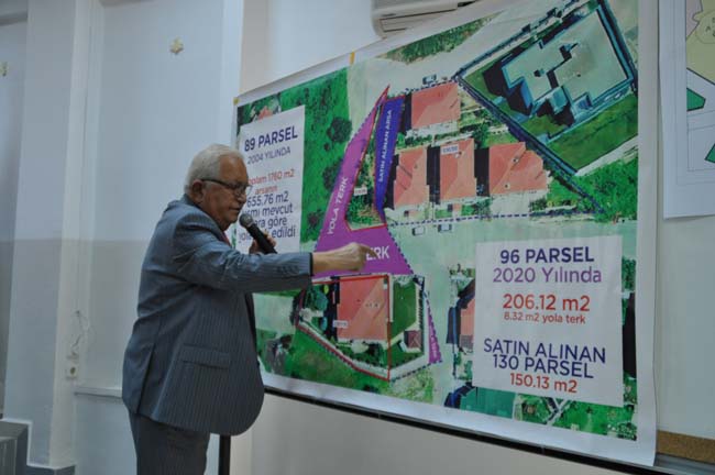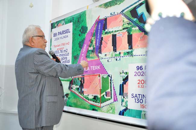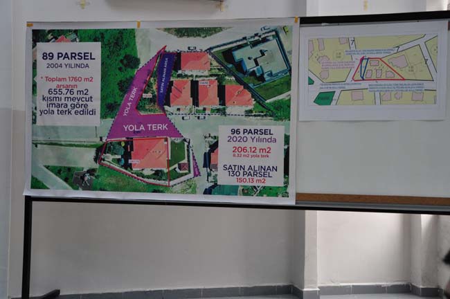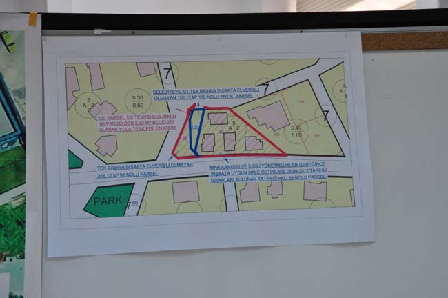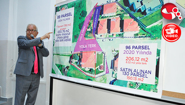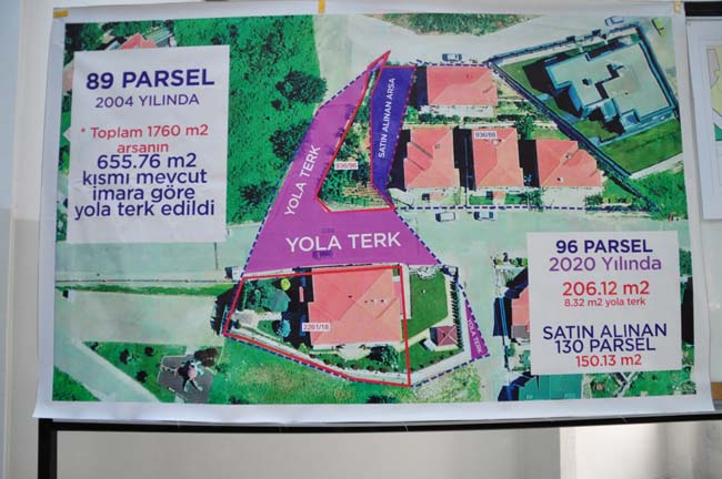 Olayın gelişimini anlatayım. 2000’li yıllarda biz de herkes gibi yer aldık. 1760 m2 büyüklüğündeydi. Şu anda oturduğum eve muhaliflerin kimi saray diyor kimi köşk diyor. Arazi tamamen bana aitti. Buradan yol geçtiği için imar gereğince toplam 655.76 m2’yi yola terk ettik. Evi yaptık, yollarımızı terk ettik. Yanında artık parsel oluştu. Artık parseller satışa çıkarılır. Bu uygulamalar sık sık Meclisin gündemine gelir. İmar Komisyonundan geçti. AK Parti’liler de buna destek verdi. AK Parti’li Meclis üyeleri Mustafa Kumaş, Fuat Ulaş… Ama akşam ne olduysa sabah karar değiştirip çekimser oy kullandılar. CHP’li Meclis üyeleri olumlu oy verdi diye onlar da şimdi hedef oldu. Her mecliste bu çalışma olur. Hayatımda böyle bir şey görmedim. Mevzuat, imar bütünlüğünü sağlamak için yanındaki parseli vereceksin, der. Aradan 8 yıl geçtikten sonra bu parsel verilmiş imar bütünlüğü sağlanmış. En uygun olan yapılmış. Belediye her zaman yaptığı gibi TSO’ya başvurmuş, saygın emlakçılara başvurmuş; onlar da fiyat vermişler. Fiyat ortalaması 754 TL çıkmış ve Encümen kararıyla burası Halil Posbıyık’a satılmış. İşlem bitmiş.