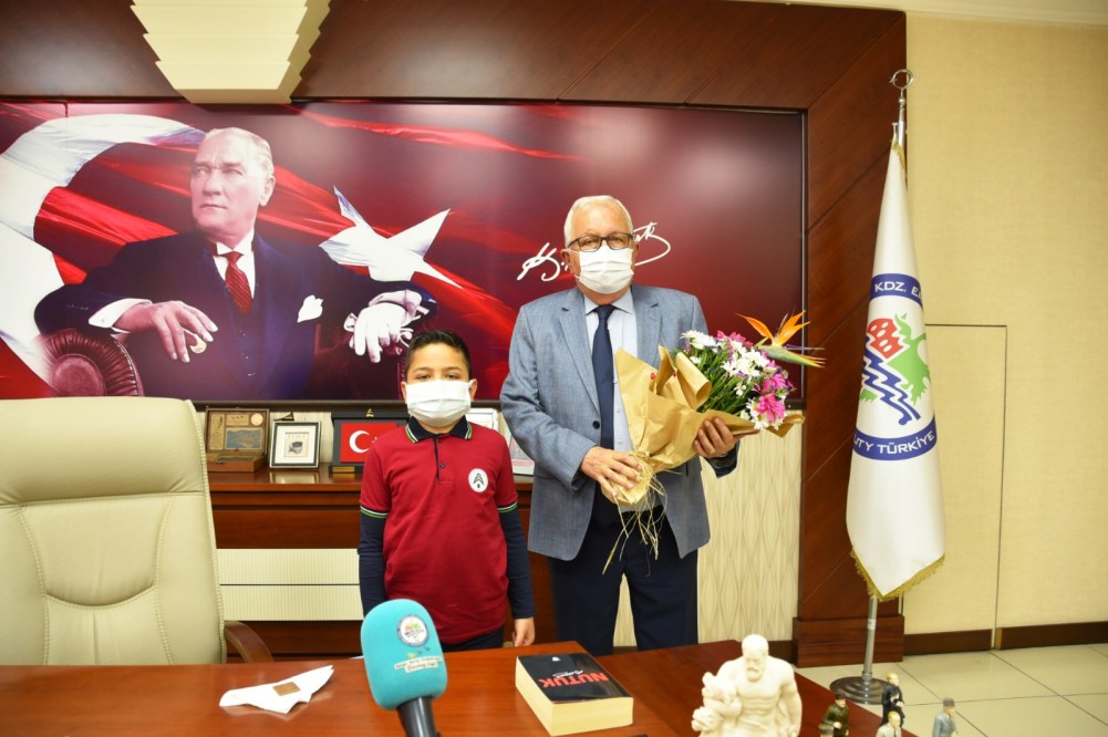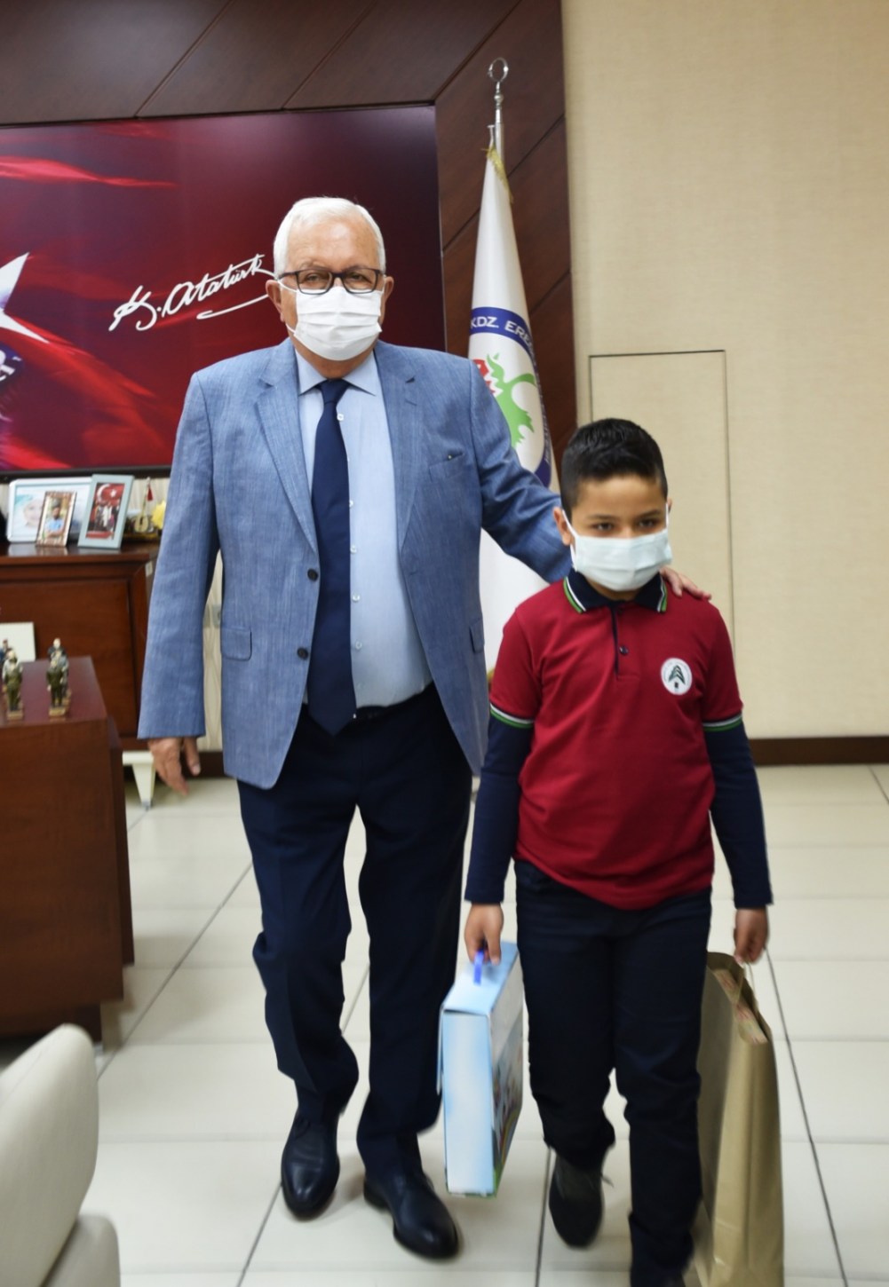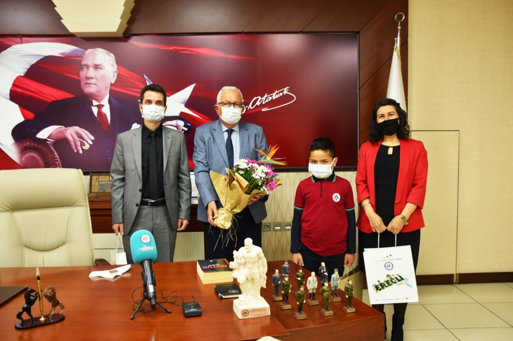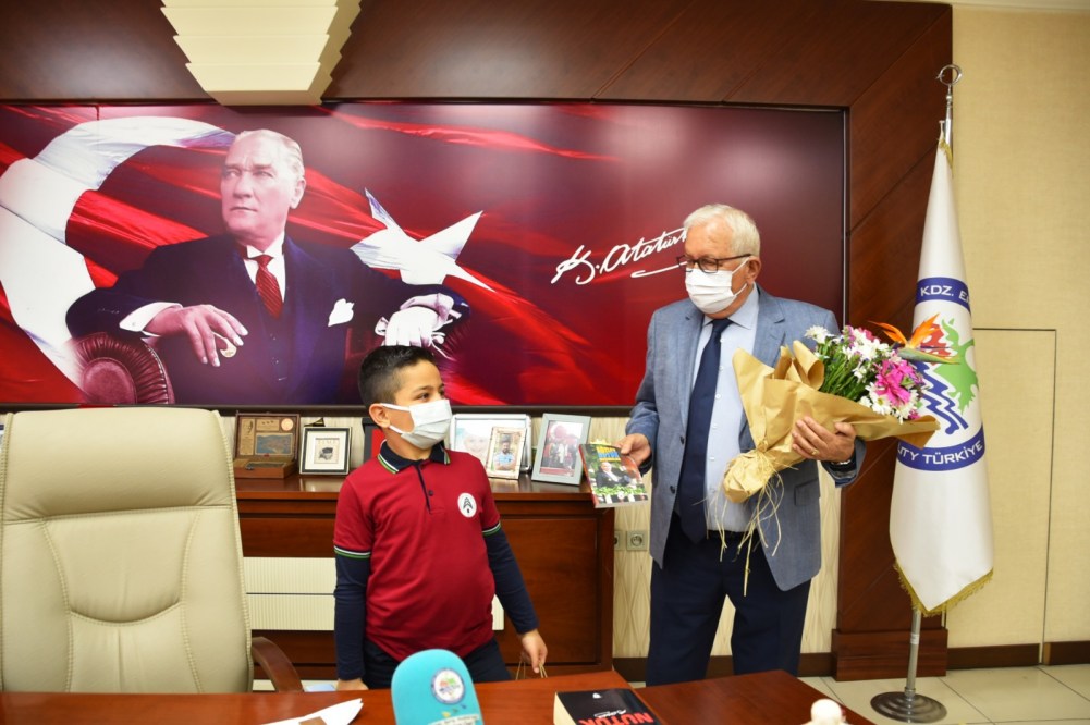 Okul Müdürü Osman Özatan ve öğretmeni Sultan Çivici ile birlikte makama gelen İsmail Eymen Göksel, Başkan Posbıyık’a çiçek takdiminin ardından koltuğa oturdu. Göksel, ilk demecinde “Ulusal Egemenlik ve Çocuk Bayramı’nı bizlere armağan ettiği için Atatürk’e çok teşekkür ediyorum. Hepinizin bayramını kutluyorum” dedi.