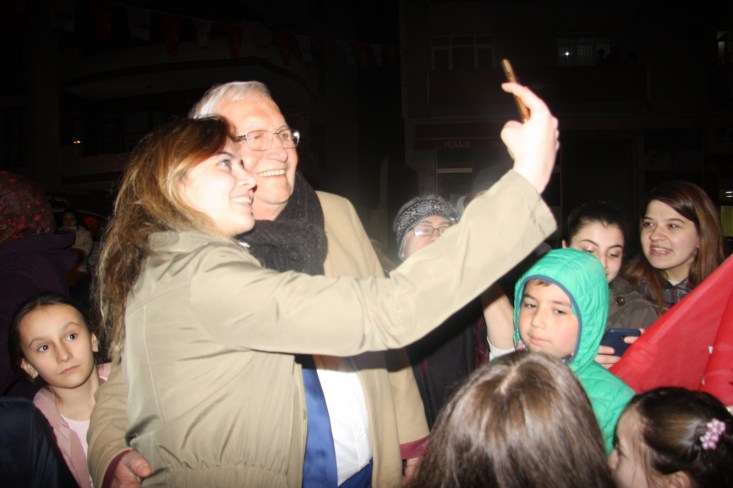 ardından kendisiyle fotoğraf çektirmek isteyenlere poz verdi, selfie çektirdi.