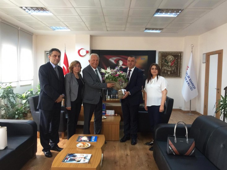 beraberinde başkan yardımcısı Selma Açıkgöz, Başkan Danışmanı Atike Önder ve