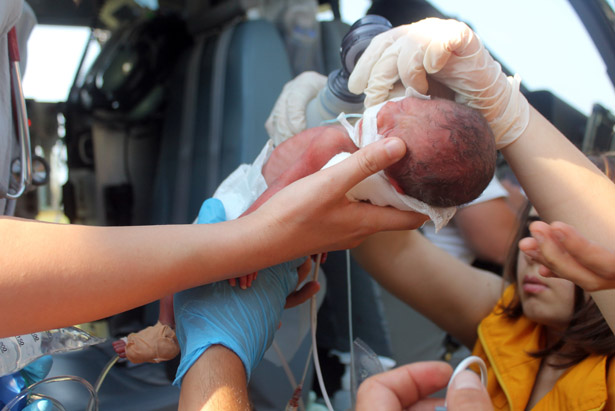 Edinilen bilgiye göre ikiz bebeklerine 7 aylık hamile olan 39 yaşındaki Ayşe Deliağcı kanaması sebebiyle eşi Emrullah Deliağcı tarafından hastaneye kaldırıldı. Hastanede sezaryenle doğum yapan anne Deliağcı'nın ikiz bebekleri hastanenin yeni doğan ünitesi yetersiz olduğu için özel bir hastaneye götürülmek üzere Kozlu Belediyespor Stadı'ndan Sağlık Bakanlığı'na ait helikopterlerle alındı.