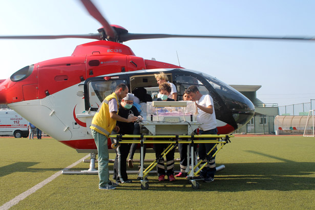 İlk kez tüp bebek yöntemiyle ikiz bebekleri olan öğretmen çift Emrullah ve Ayşe Deliağcı, 910 ve 940 gram olarak dünyaya gelen bebeklerini ilk helikopter yolculuğuna uğurlamanın heyecanını yaşadı.