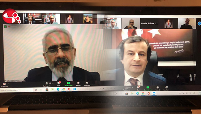 Bülent Ecevit Üniversitesi İlahiyat Fakültesi koordinesinde düzenlenen online konferansta, konuşmalarına ‘ahlak’ ve ‘din’ kavramlarını teorik anlamda açıklayarak başlayan Prof. Dr. İmamoğlu, dinin, ilişkili olduğu konuların başında ahlak kavramının geldiğini belirterek, iki kavramında yaşamsal ilişki içeresinde sıklıkla karıştırıldığını söyledi. İnsanoğlunun varlığından kaynaklı eylemleriyle doğrudan ilgili bir kavram olarak ahlakın, öncelikli olarak dünyadan kaynaklı dünya yaşamına ve düzenine ilişkin hedefler ve amaçları olan, dünyevi ilişkilerin nasıl düzenlenmesi gerektiğini açıklayan bir disiplin olduğunu vurgulayan İmamoğlu, dinin ise dünya yaşamını aşan, dünyevi ve uhrevi alanla ilgili olduğunu söyledi. Din ve ahlakın insanlık için vazgeçilmez bir alan olduğunu ifade eden Prof. Dr. İmamoğlu, sağlıklı ve iyi bir toplumsal yaşamın inşasında ve idame ettirilmesinde, huzur ve düzenin sürdürülmesinde din ve ahlak arasındaki uyumun önemine değindi. Din ve ahlak arasındaki kurulacak ilişkinin, din ve ahlak kavramlarına yüklenecek anlamlara göre de değişebileceğini belirten İmamoğlu, bu iki önemli kavram arasında farklı açılardan oluşabilecek ilişki türlerinden de anektodları katılımcılarla paylaştı.