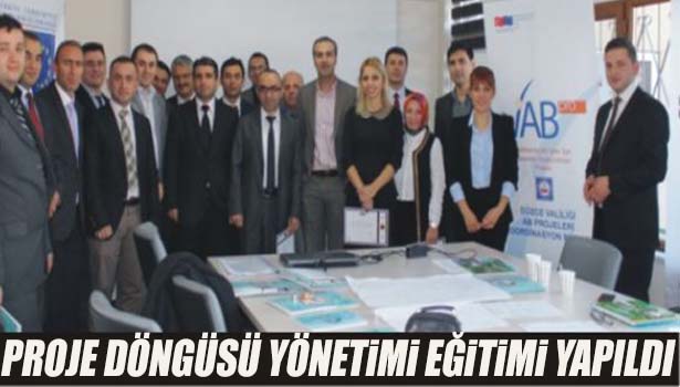 AB Bakanlığınca Uygulanmakta olan " Valiliklerde AB İşleri İçin Kapasite Oluşturulması Projesi Eğiticilerin Eğitimi Programı" kapsamında Milli Eğitim Müdürlüğüne bağlı okul ve kurumlarda çalışan 20 personele yönelik AB, Kalkınma Ajansı vb fon kuruluşlarının uygulayacakları programa daha fazla proje yapmalarını sağlayarak ilin kalkınmasına destek olmak amacıyla Doğu Marmara Kalkınma Ajansı Düzce Yatırım Destek Ofisi Toplantı Salonunda 03-04-05 Kasım 2014 tarihlerinde "Proje Döngüsü Yönetimi" eğitimi verildi.