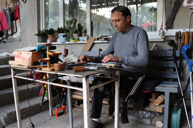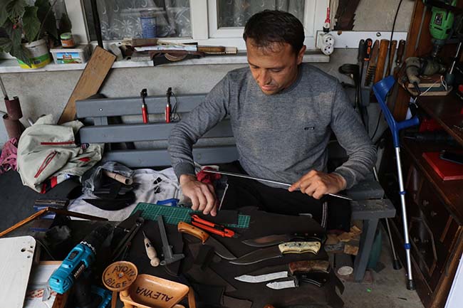 Kullandığı protezi emekli olduğu için devletin karşılamadığını, evinin önündeki atölyesinde el ürünleri yapıp sattığını anlatan Çelik, "Bıçak yapıyorum. Tamamen benim imalatım. İnşallah bu ürünleri satıp para kazanmak istiyorum. Protezimin garantisi bitti, şu an bakımı yapılması lazım ama gücüm yok" diye konuştu. Yürüyüp koşmak istediğini anlatan Aydın Çelik, protezinin bakımı için yardım istedi.