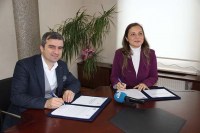 Akçakoca Belediye Başkanı Cüneyt Yemenici ve Düzce Üniversitesi Prof. Dr. Nigar Demircan Çakar Başkanlık makamında bir araya geldi. Akçakoca Belediyesi ve Düzce Üniversitesi Bina Tahsisi Hakkında karşılıklı protokol imzalandı.