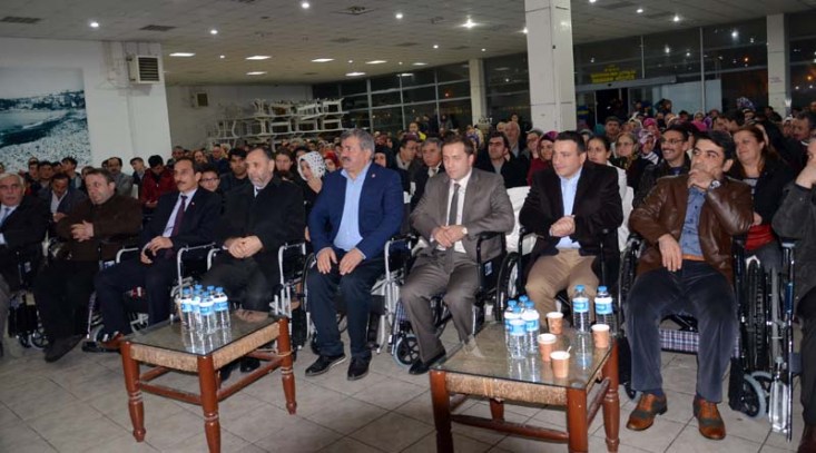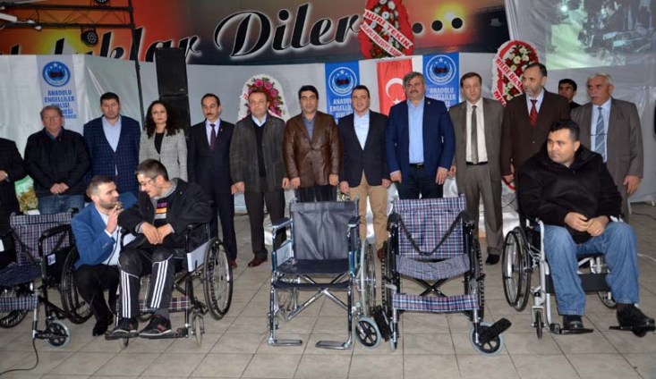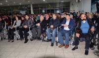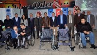 tekerlekli sandalyeleri ihtiyaç sahibi engellilere teslim etti. Konuşmaların