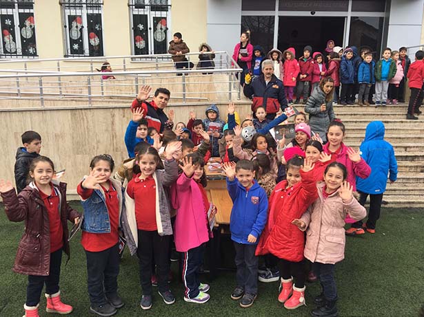 Tatbikatlar sonunda öğrencilere eğitici broşürler dağıtıldı.