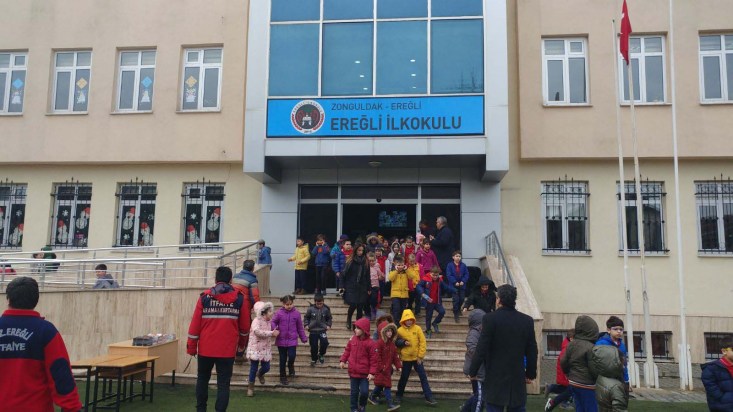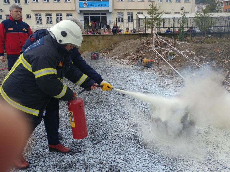 Karadeniz Ereğli Belediyesi İtfaiye Müdürlüğü tarafından Ereğli İlkokulu ve Zübeyde Hanım Mesleki ve Teknik Anadolu Lisesi'nde '28 Şubat Sivil Savunma Günü' nedeniyle tatbikatlar yapıldı.