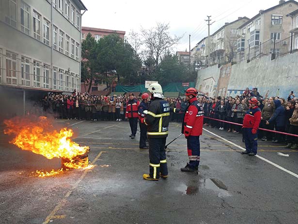 Öğrencilere deprem veya yangın anında acil durum tahliye ve hareket tarzı ile ilgili sunum yapılarak başlayan tatbikatlarda, okullar kontrollü biçimde tahliye edilip, merdivenli araçla mahsur kalan kişileri kurtarma, sedye ile yüksek katlı binalardan yaralı indirme olayları gerçekleştirildi. Öğrencilere ayrıca Yangın Söndürme Cihazı kullanımı hakkında da bilgi verildi.