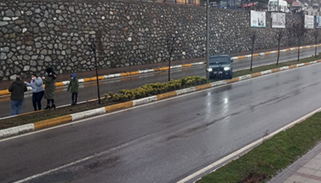 Zonguldak’ta aşırı yağış nedeniyle sürücüsünün kontrolünden çıkan otomobil refüje çıkarak elektrik direğine çarparak durabildi.