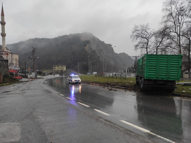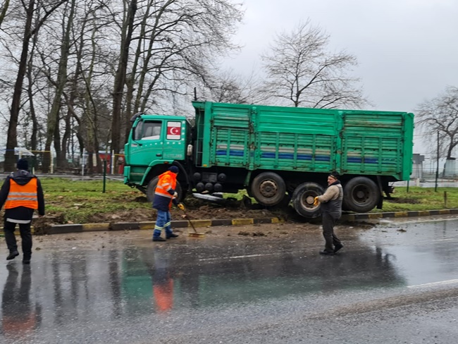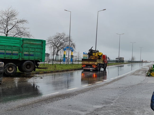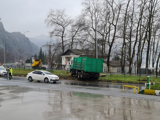 Edinilen bilgiye göre, İsmet E. İdaresindeki 67 LC 852 plakalı kamyon kavşaktan geçiş yaptığı sırada sürücüsünün direksiyon hakimiyetini kaybetmesi sonucu refüje çıktı. Kazada kamyon sürücüsü yara almazken, olay yerine gelen trafik polisleri başka bir kaza yaşanmaması için yol üzerinde önlem aldı. Bir süre tek şeritten verilen trafik kamyonun refüjden kaldırılması ile yeniden çift şeritli olarak trafiğe açıldı.
