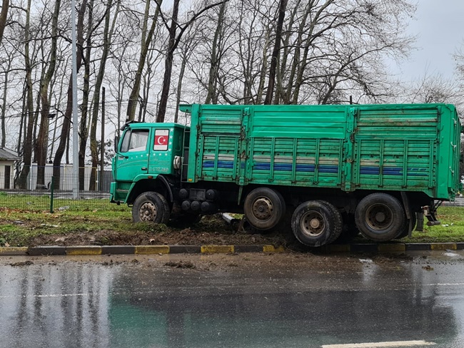 Zonguldak’ın Ereğli ilçesinde kavşakta direksiyon hakimiyetini kaybeden kamyon refüje çıktı.