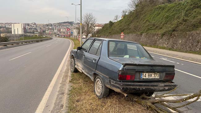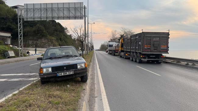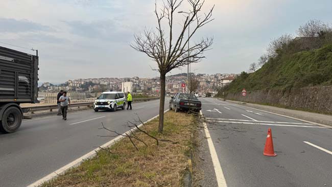 Zonguldak'ın Alaplı ilçesinde meydana gelen trafik kazasında, tırın çarptığı otomobil refüje çıktı.