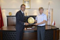 Üniversitesi Rektörü Prof. Dr. Mahmut Özer'i makamında ziyaret etti.